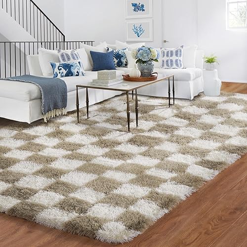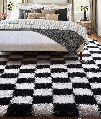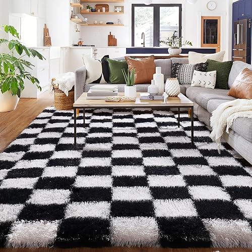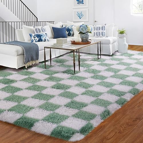 BYBSRLL Tapis de chambre à coucher à carreaux, 90 x 150 cm, vert olive et blanc, moelleux, décoration de salon, pour enfants, lavable, antidérapant, douillet