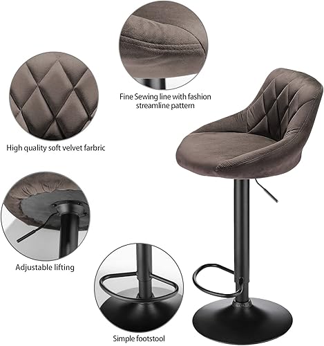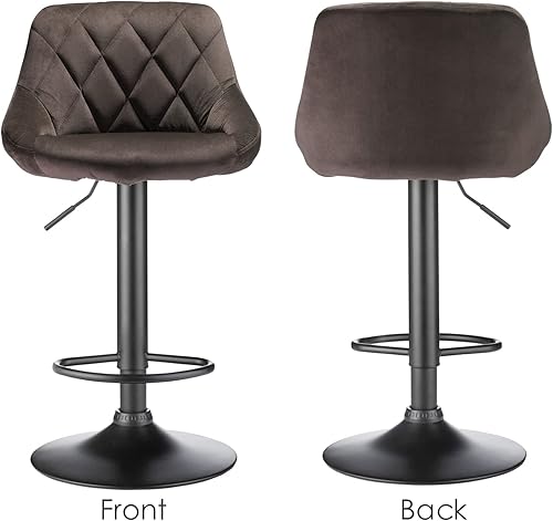Lot de 2 Tabourets de Bar Velours, Chaises de Bar Rotatives avec Dossier Rembouré, Chaise Haute Bar Réglable en Hauteur, Moderne élégant, Tabourets Haute pour Cuisine/Bar/Bureau (Marron)