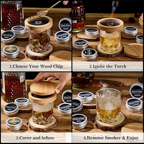 Coffret Fumoir à Cocktail Cadeau – Kit Old Fashioned avec Chalumeau, 6 copeaux de bois, 2 pierres à whisky inox, accessoires bar, cadeau homme, papa, Noël, anniversaire, fête des pères (sans gaz)