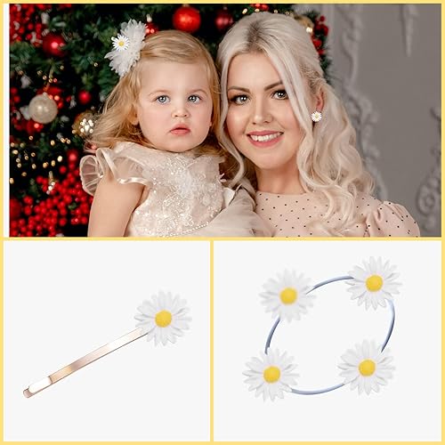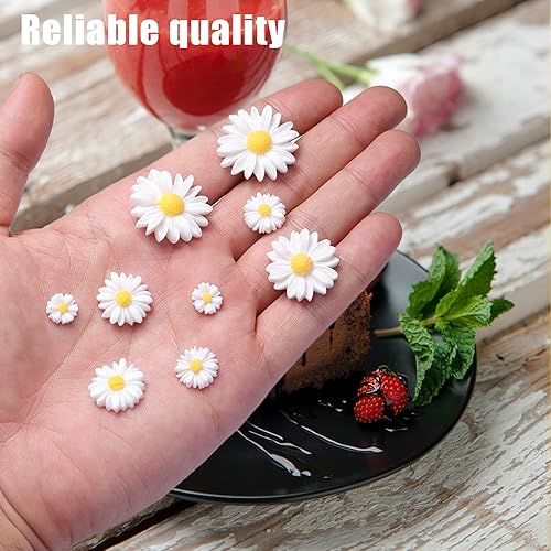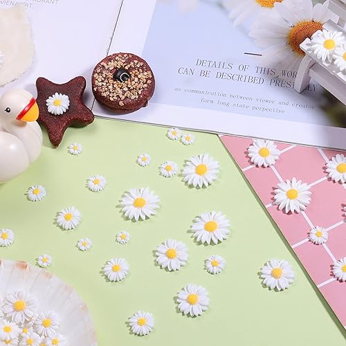 AIEX 50 pcs Daisy Flower, Breloques de Fleurs de Marguerite en Résine à Dos Plat Mini Marguerite Fleur Marguerite Decoration Anniversaire pour la Décoration Artisanale (5 Tailles, Blanc et Jaune)