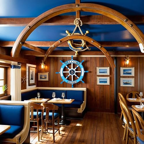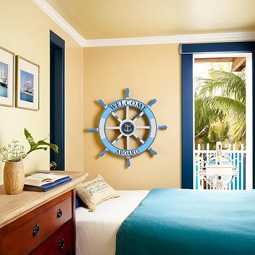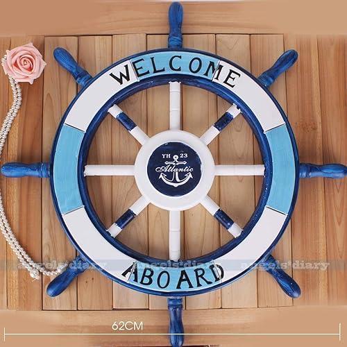 Nagina International Volant de bateau nautique 24 'en bois, gouvernail de plage, décoration murale