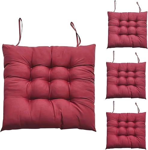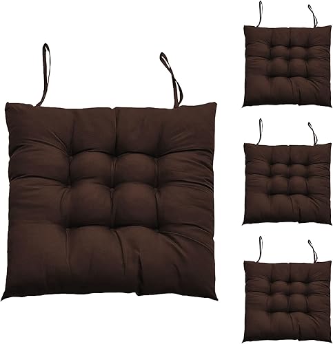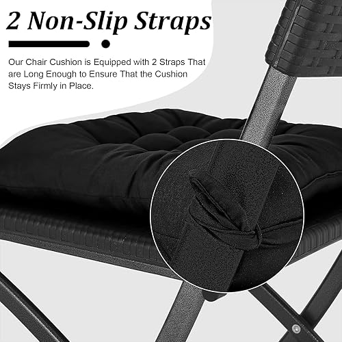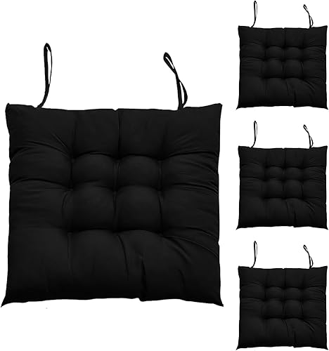 Hengrongshen 4 Pièces Coussins de Chaise d'Intérieur Noir, Coussin de Chaise 40 x 40, Coussin Chaise avec Liens, Coussin Chaise Exterieur pour Chaise de Bureau, Chaise d'Ordinateur, Chaise de Jardin