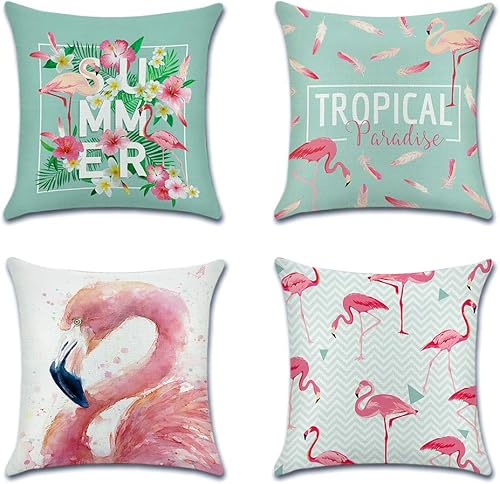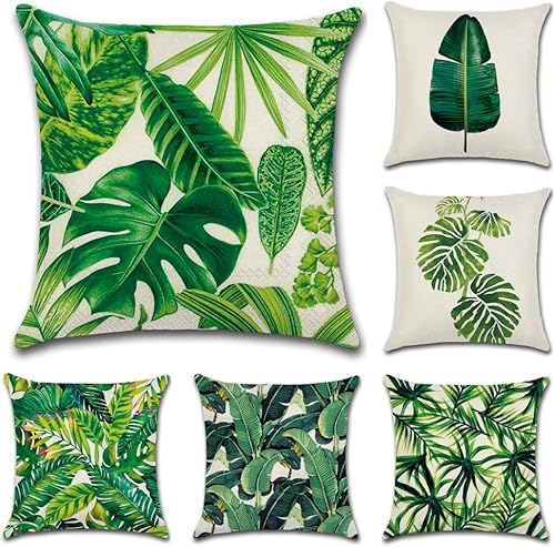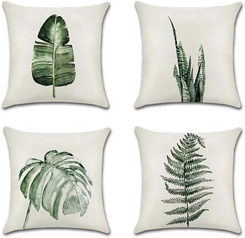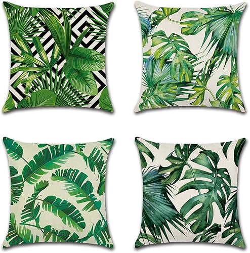 JOTOM Housse de Coussin Animaux Fleurs La Vie Marine Plante Tropicale Taie d'oreiller pour Canapé Maison Salon Chambre Décoration D'intérieur,45x45cm,Ensemble de 4 pièces (Plante Tropicale A)