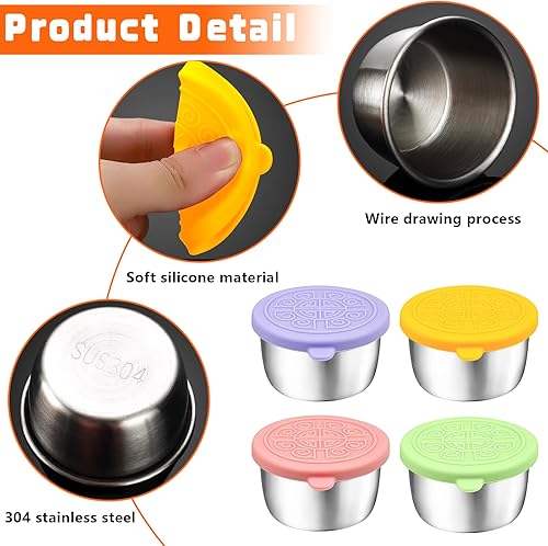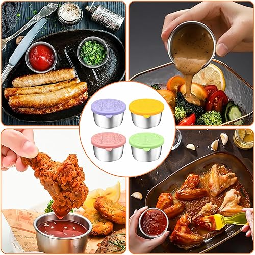 XTUDOU® 8 Pièces RéCipient Vinaigrette Avec Couvercles En Silicone, 304 Avec Couvercle En Silicone - RéCipients de 50 Ml pour Vinaigrette pour Collations, Sauces, Sauces Et éPices