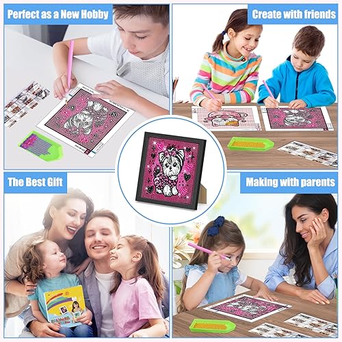 DOMROM Chien Diamond Painting Enfant avec Cadre, 5D Schnauzer Diamant Painting Kit Pour Adulte, Peinture Diamant pour Enfants 6-12 Broderie Diamond Painting Kit Cristal Painting pour Décoration Murale