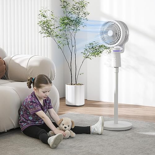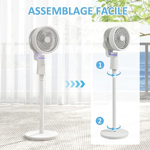 HOMCOM Ventilateur sur pied 40 W ventilateur circulateur d'air portable et léger, oscillation réglable à 70°+90°, télécommande, minuterie 7H, 3 vitesses, pour chambre, maison ou bureau, blanc