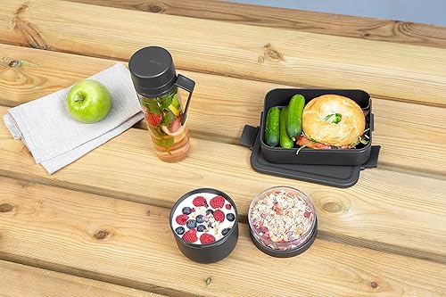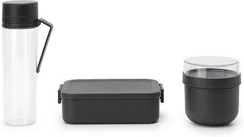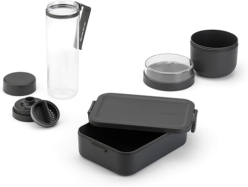 Brabantia - Kit Repas Make & Take - 3 pcs: Gourde avec Filtre 0.5L, Pot à Encas 0.5L & Boîte à Repas M - Étanches - Lavables au Lave-Vaisselle - Dark Grey