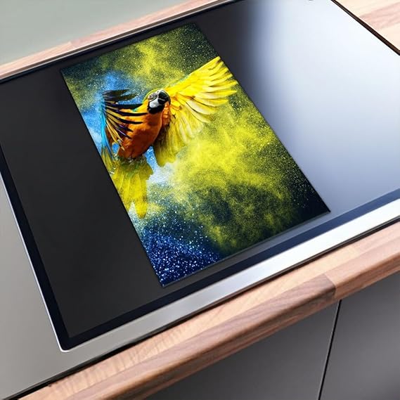 Cache-plaque de cuisson enroulable - En plastique - Pour plaque à induction - Motif perroquet - Multicolore - 60 x 52 cm