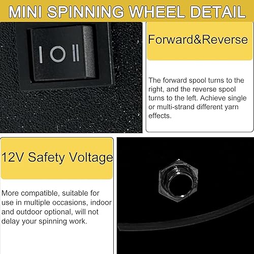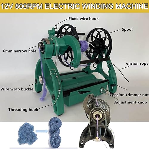 Mini Rouet éLectrique | Essoreuse à Laine Portable 12 V | Vitesse Maximale De 800 Tr/Min | Machine à Enrouler Le Fil Automatique Pour L'Artisanat à Domicile | Poils De Chien/Coton/Laine ,Black