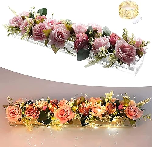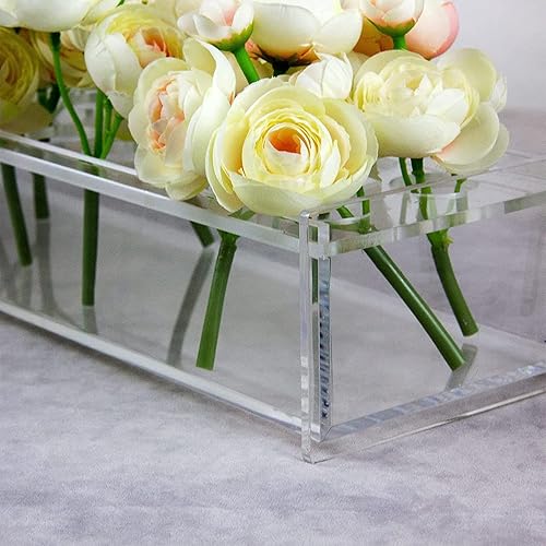 Rectangulaire Vase à Fleurs En Acrylique, Vase En Acrylique Transparent avec Del, 10/12/14/16/18/24 Trous Rectangle, BoîTe à Fleurs En Acrylique Pour Centres De Table,60*10*6.5 CM (24 holes)