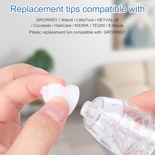 BOXOB 6 Embouts de Rechange pour Aspirateur et 2 Têtes de Rechange en Plastique, 3 Styles d'Embouts en Silicone pour GROWNSY Watolt LittleTora HEYVALUE Cocobela HailiCare KIDIRA TEQIN X-Bosak