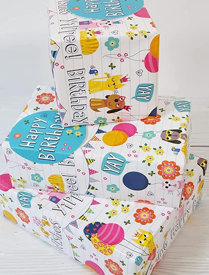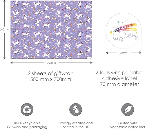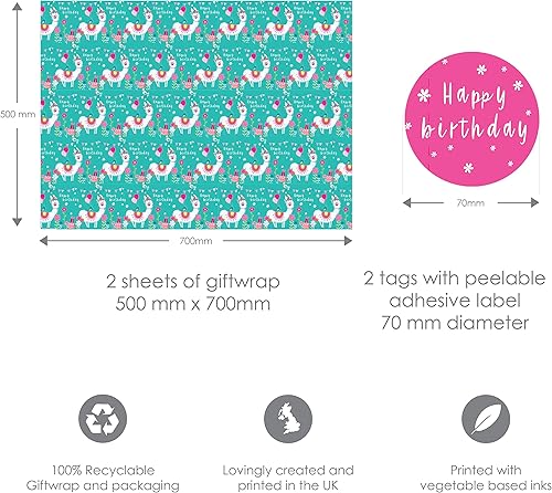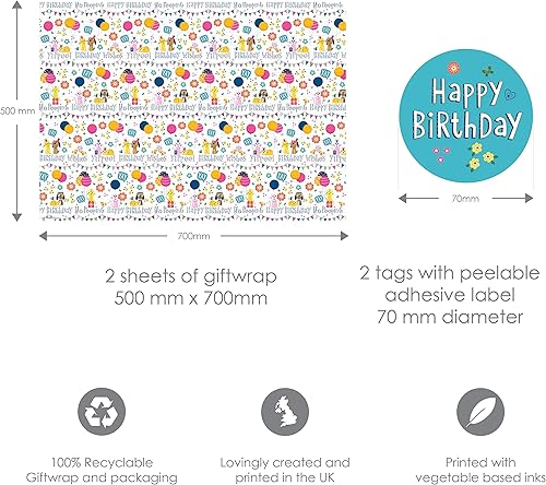 Abacus Cards AMZ02A Lot de 6 feuilles de papier cadeau recyclables pliées et 6 étiquettes