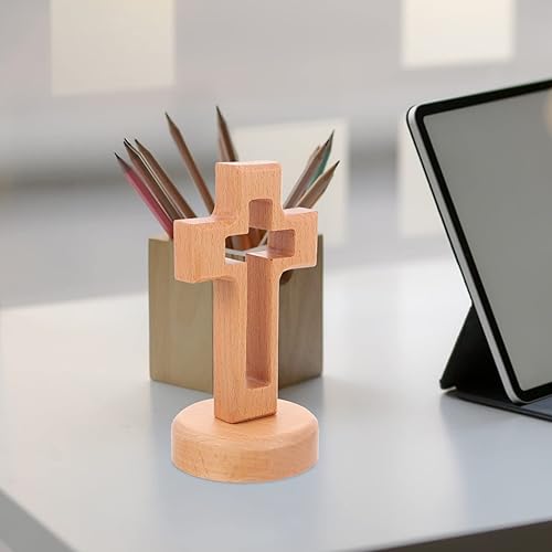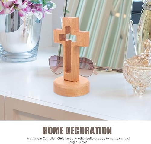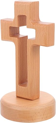 DEARMAMY Croix En Bois Avec Base Amovible: Plateau De Table Crucifix Debout De 5. 2 Pouces (14. 3Cm)-Conception Creuse Pour La Prière De Pâques L'église D'autel Catholique La Maison