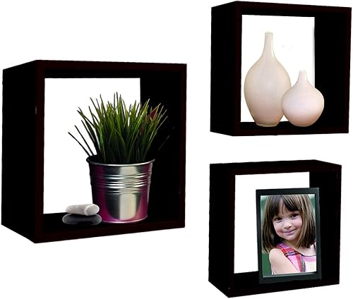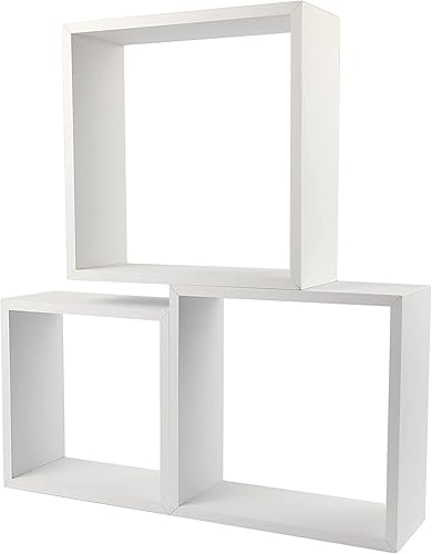 H HANSEL HOME Lot 3 Étagères Murales de Rangement Cubique Décoratives Couleur Chêne, Étagères Murales Fixation Invisible 30/27/24 cm