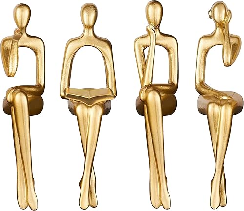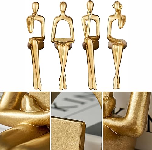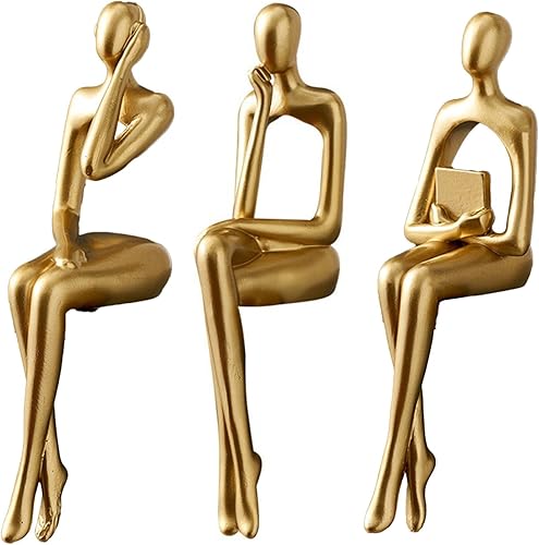 iFCOW Lot de 3 Statues de penseur dorées Sculpture Abstraite Statue de penseur Assis Décoration pour Maison Bureau étagère