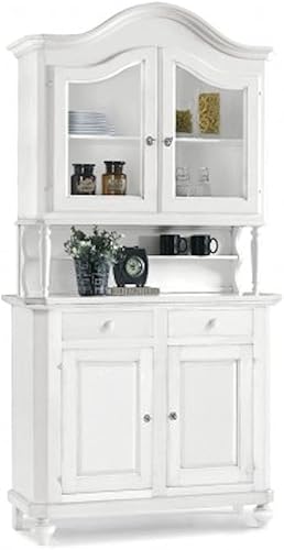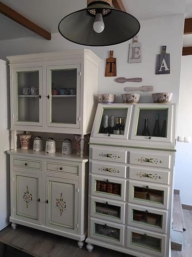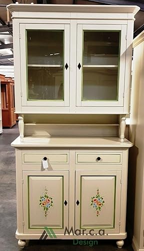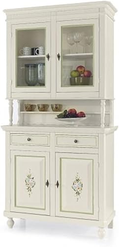 Mar.c.a. Design - Vitrine de salon élégant en bois de peuplier Shabby Chic, cristal couleur blanc décoré, avec 2 portes - Meuble de salon, Arte Povera Made in Italy - Mis. 104x43x218h