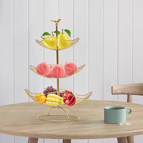 ARBGO Corbeille à fruits à 3 étages en métal à 3 niveaux - Support de panier à fruits en métal - Pour fruits, gâteaux, bonbons
