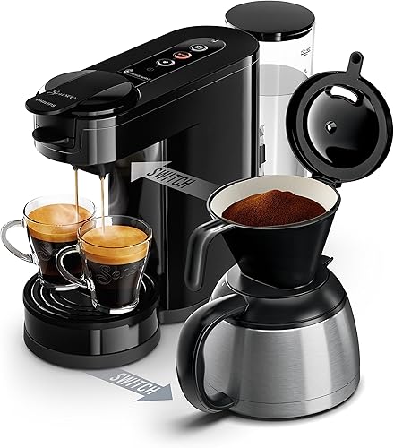 Philips SENSEO Switch Machine à Café à Dosettes et Filtre 2 en 1 - Verseuse isotherme - Technologie Crema Plus - Noir intense - (HD6592/61)