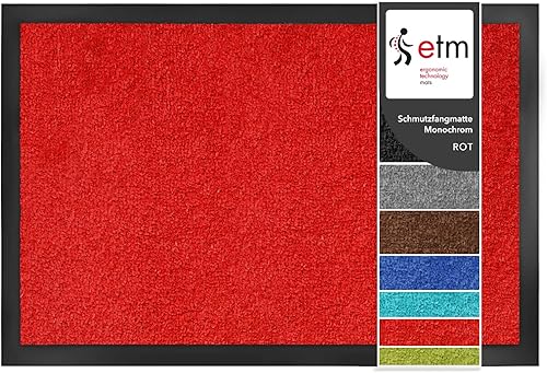 etm Tapis de Porte d'Entrée - Paillasson Antidérapant | Multitude de Couleur | Tapis Antidérapant Très Absorbant | pour l'Intérieur et l'Extérieur | Rouge - 90x120cm