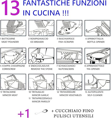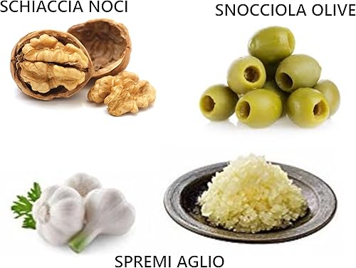 Créations les couleurs dans le cœur – Presse-ail 14 fonctions, batteur de viande poisson ouvre-bocal dénoyau, ouvre-bocal pour hachoir légumes avec cuillère, produits italiens