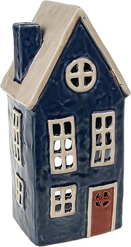 Village Pottery Grande Bougie Chauffe-Plat Motif Cottage Bleu Marine