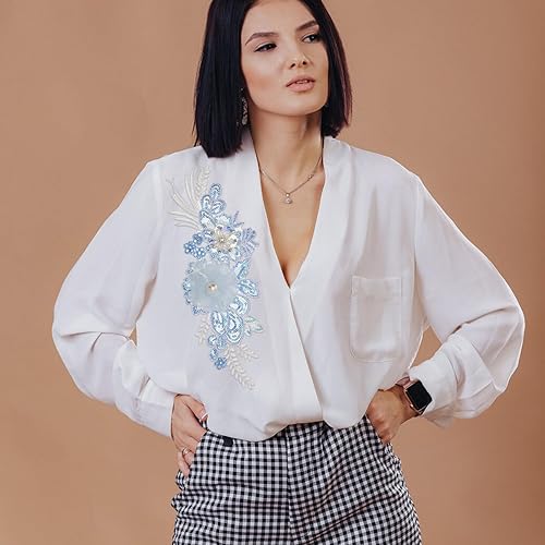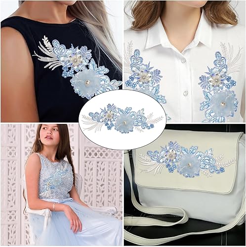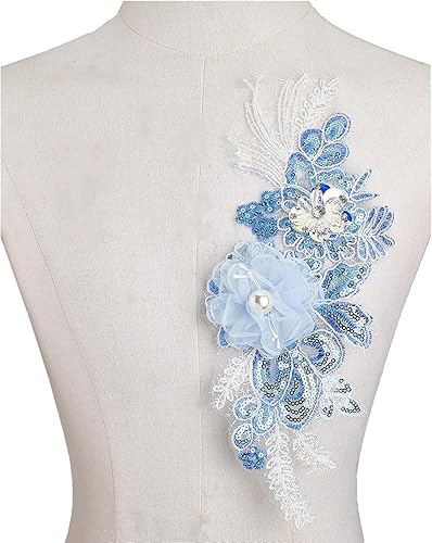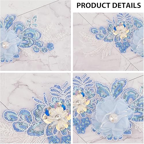 NICENEEDED Applique en Dentelle Fleurie Patchs à Coudre Perlés 3D Appliques Brodées à Paillettes Florales en Polyester Dentelle Broderie de Perles Garniture de Couture