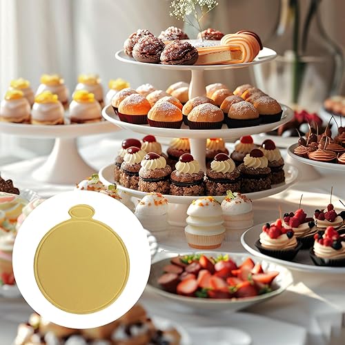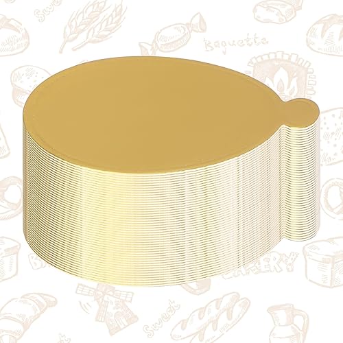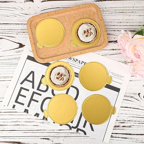 BOXOB 50pcs Mini-Plateaux à Gâteaux, Bases Rondes Dorées de 8 cm Plateaux à Desserts Assiettes en Carton pour Mousses Pâtisseries Pains