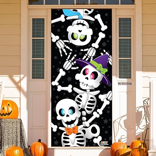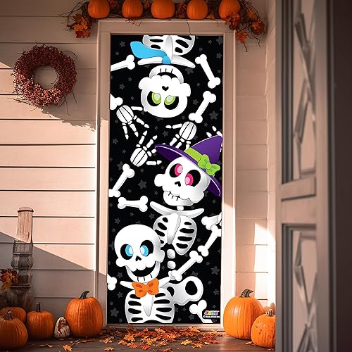 JOYIN 3D Design Rideau de Porte/Mur/Fenêtre, Motifs de Squelette Mignon, environ 76.2cm x182.88cm, pour Décoration d’Halloween