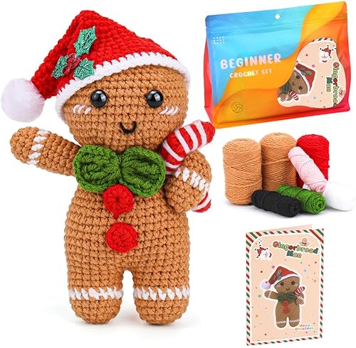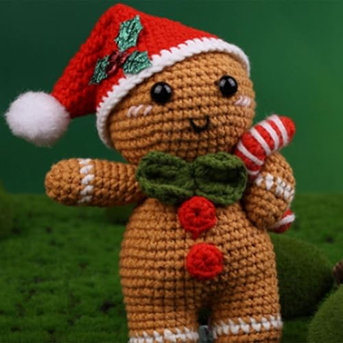 Pyanegn DéCorations de NoëL Kit de Crochet DIY de NoëL avec Aiguilles à Tricoter en Peluche Bonhomme en Pain D'éPices PoupéE Facile