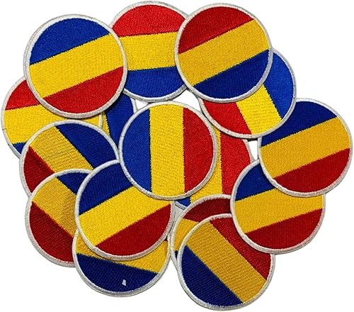 BeBuz Écusson brodé Drapeau Roumanie Rond ou Circulaire 6 cm Écusson Thermocollant à Coudre Militaire Tactique Badge pour Vestes Sacs à Dos Chapeaux Vêtements