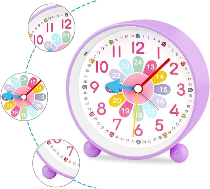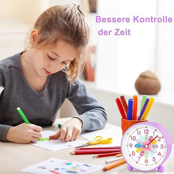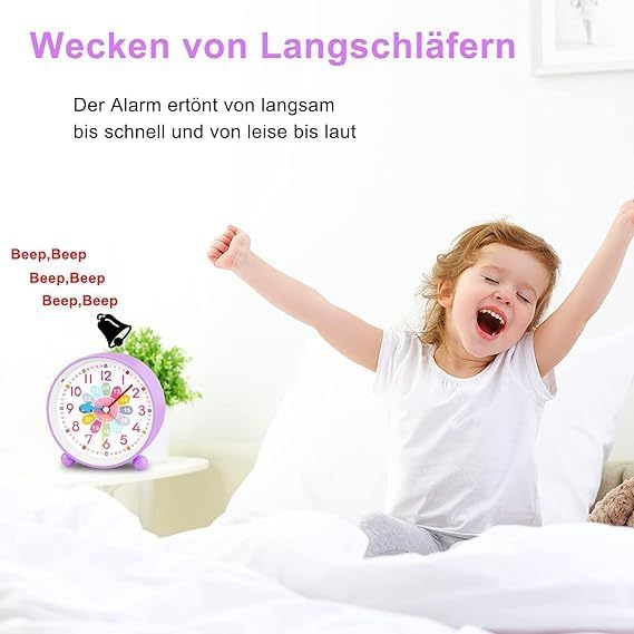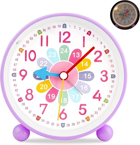 GUUMUXIN Réveil Enfant Analogique Silencieux - Petit Réveil à Quartz De Voyage Léger Avec Snooze Et Lumière - à Piles, Pour Garçon Et Fille (Violet)