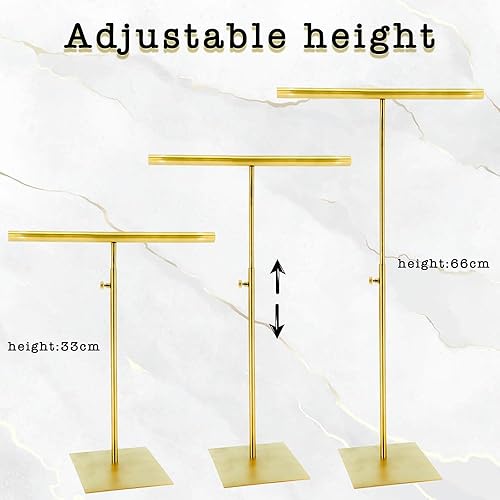Selyse Présentoir à porte-monnaie en forme de T en métal réglable avec double crochet pour organiseur de collier - Idéal pour la maison et le magasin - Doré