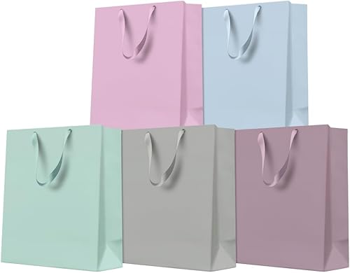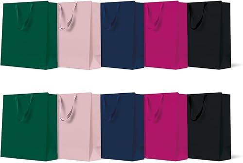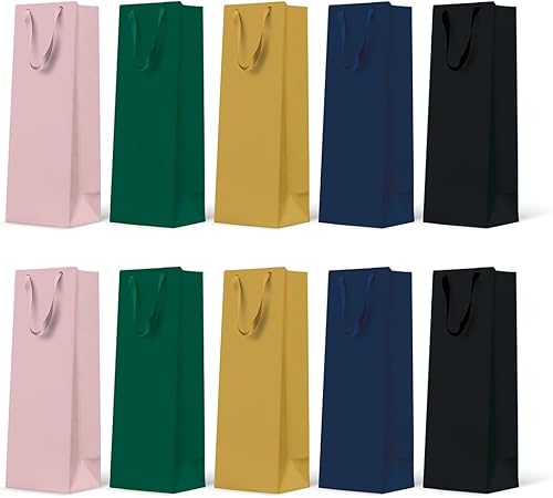 PAW - Sacs cadeaux 37 x 12 x 10 cm – Lot de 10 sacs pour bouteille de vin avec anse en tissu | Mélange de 5 couleurs unies | Sacs élégants pour vin, champagne, anniversaires, mariages, fêtes et