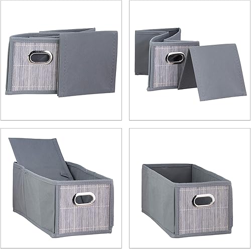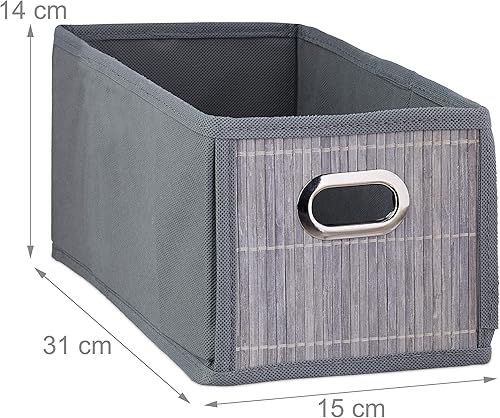 Relaxdays Panier de Rangement Bambou, Corbeille Salle de Bain, carré, boîte étroite, 14 x 15 x 31 cm, Pliant, Nature