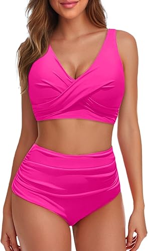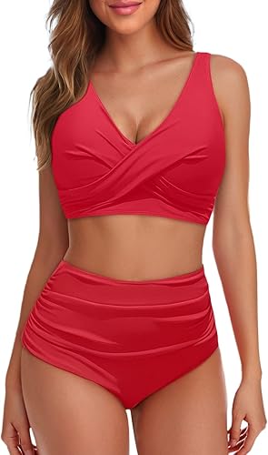 Bikini Rouge Deux pièces de Couleur Unie pour Femme Bikini Cher