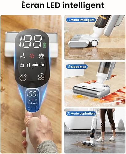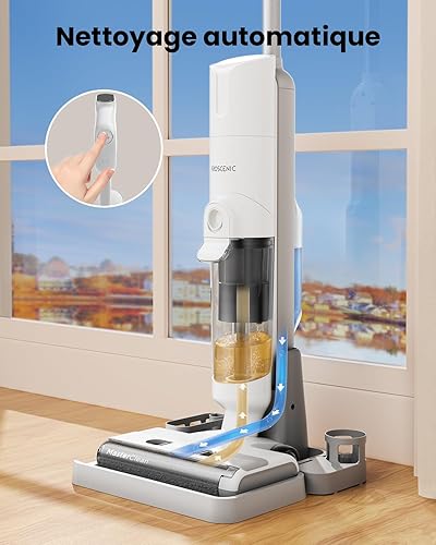Proscenic Aspirateur Laveur sans Fil, Eau et Poussière, Balai sans Fil Humide et Sec,1.15L Réservoir,Autonettoyant,30 Mins Pour Nettoyer Les Saletés Collantes,Sols Durs