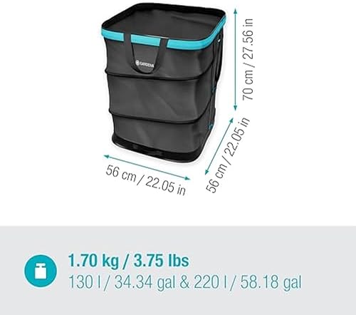 Gardena Sac à déchets de jardin PopUp taille L : sac à déchets rectangulaire, facile à utiliser et pliable, pour le jardin, capacité 220 l, pour le ramassage des déchets verts (11716-20)