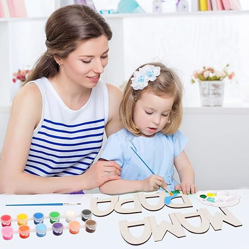 RtottiM MAMA Papa Cadeau petit-fils Cadeau pour papa maman Cadre photo papa Cadre photo lettres en bois Kit de bricolage avec couleurs et pinceaux Idées cadeaux pour MAMA PAPA Cadeau d'anniversaire