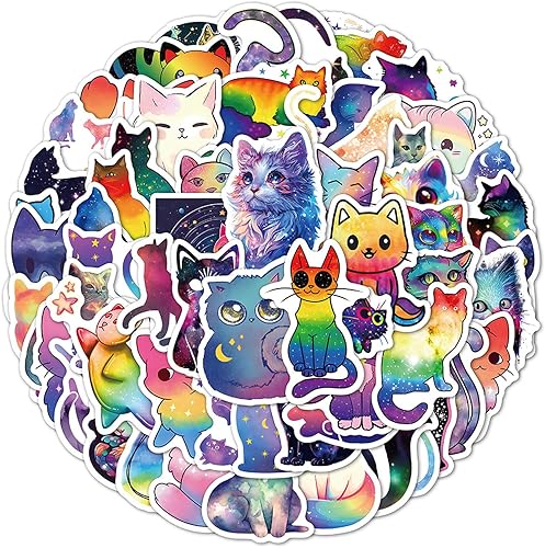 Lot de 60 autocollants chat ciel étoilé chat mignon autocollants imperméables pour bouteille d'eau, ordinateur portable, scrapbooking, journal intime, convient pour adultes et adolescents
