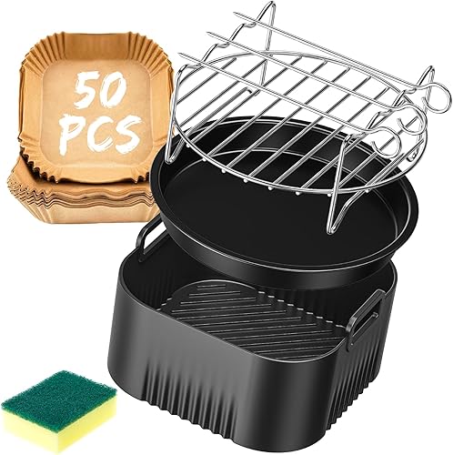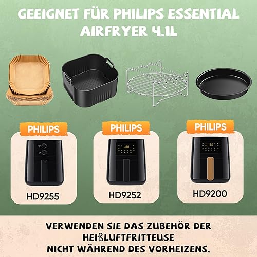 Accessoires Air Fryer pour Philips Série 5000 L 4.1L(HD9255, HD9252, HD9200), BPA-free Airfryer Accessoires pour Philips Essential 4,1L, Réutilisable Moule Silicone Airfryer avec éponge, 5PCS
