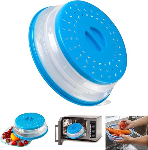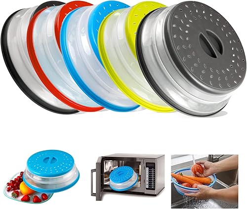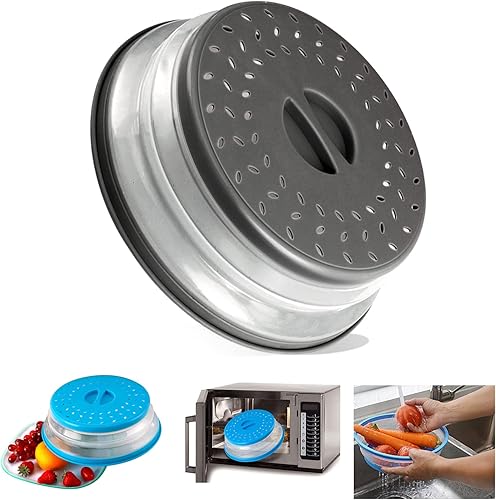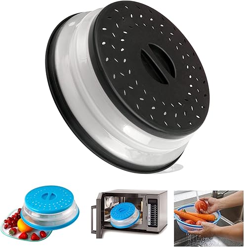 Couvercle pliable pour micro-ondes - Couvercle ventilé anti-éclaboussures pour micro-ondes - Couvercle pour micro-ondes - Couvercles à vapeur réglables sans BPA (noir)