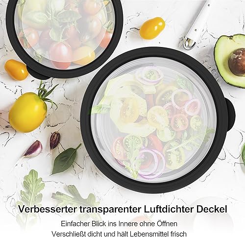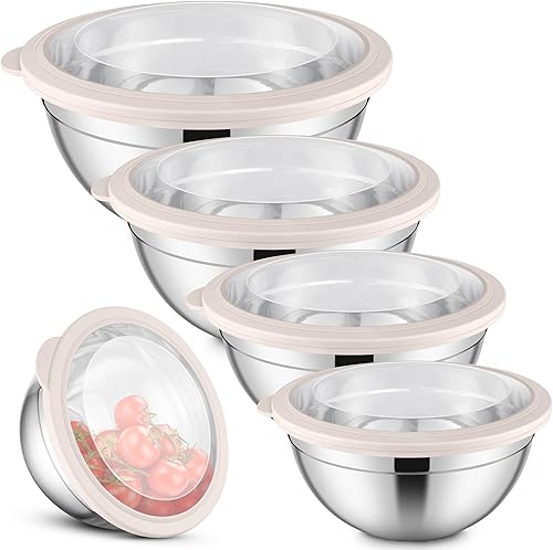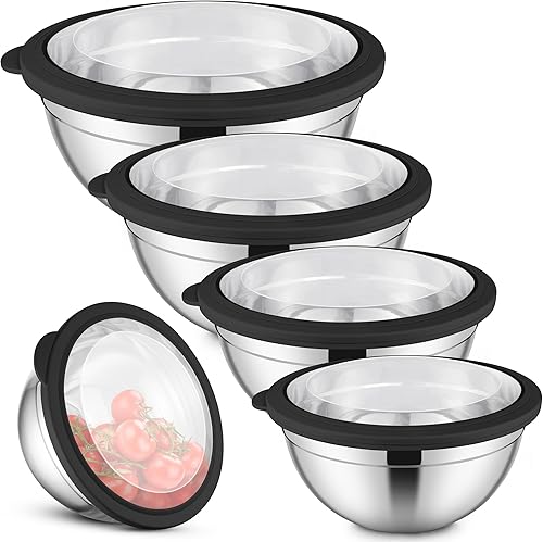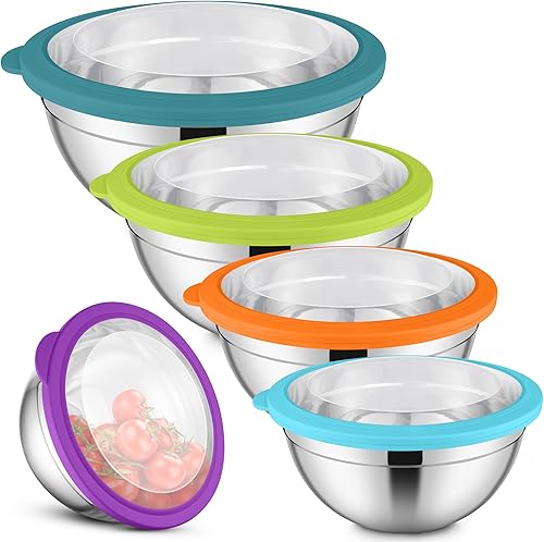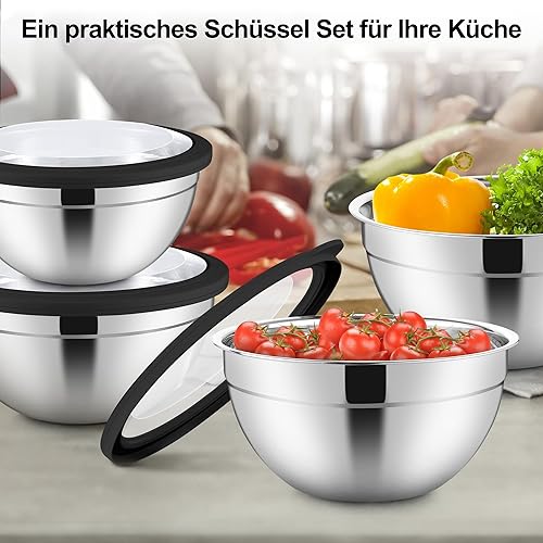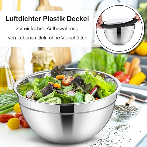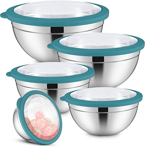 Herogo Lot de 5 saladiers en acier inoxydable avec couvercle hermétique transparent, pour servir la pâtisserie, 4,5 l, 2,7 l, 1,5 l, 1,2 l, 0,7 l, empilables, passent au lave-vaisselle, multicolores