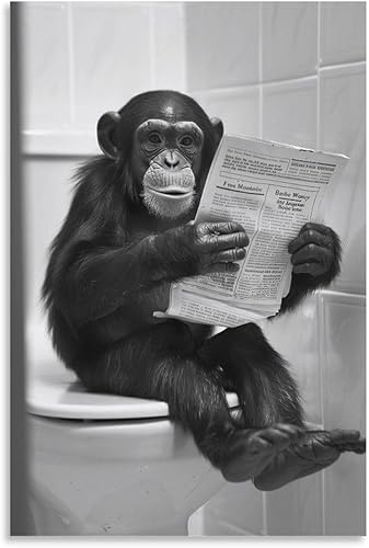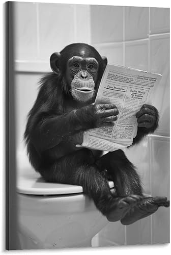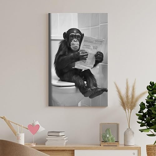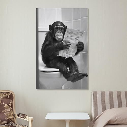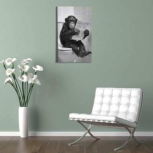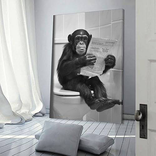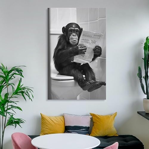 Poster vintage amusant sur toile de singe assis sur les toilettes, lisant un journal, pour salle de bain, décoration murale pour salon, chambre à coucher, 40,6 x 61 cm (40 x 60 cm)