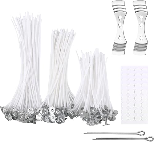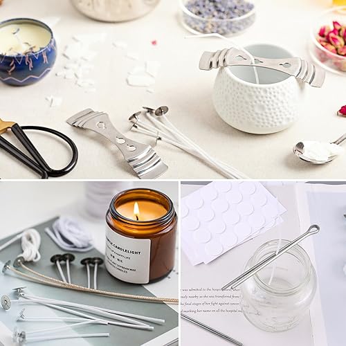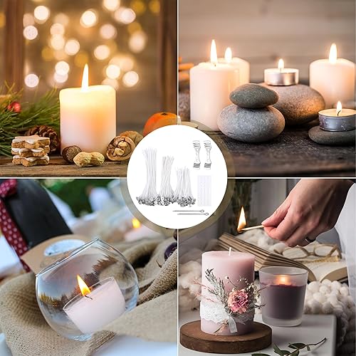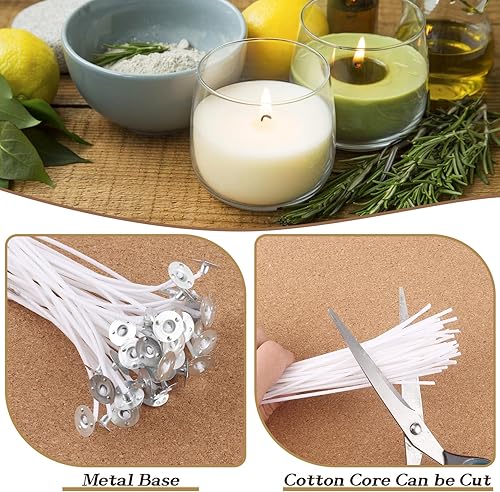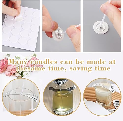 Meches Bougies 150pcs Mèche de Bougie Mèches Pré-Cirées en Coton Naturel avec 100 Mousse Autocollants et 2 Un Support Fixe Mèche pour Fabrication de Bougies DIY Bougies