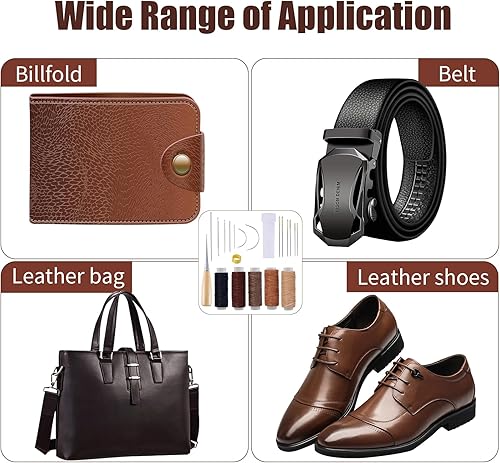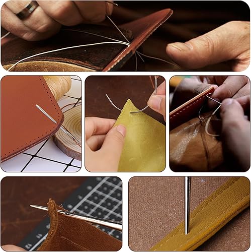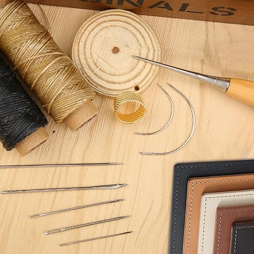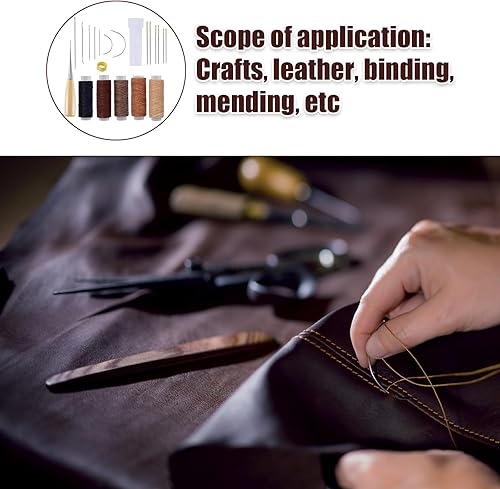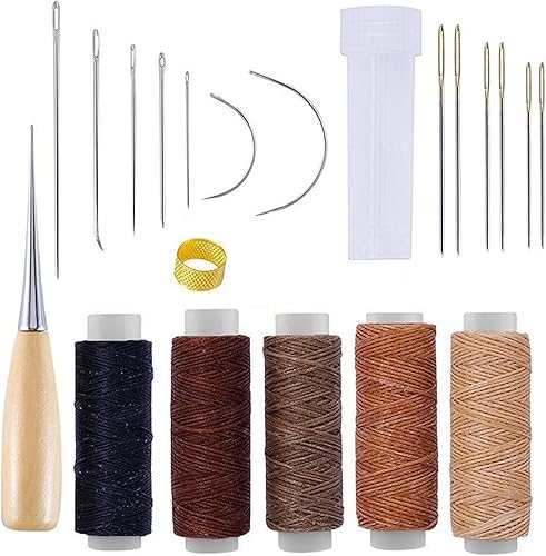 Kit Couture Cuir 21 Pièces, Kit de Couture en Cuir avec Fil Ciré Multicolore, Aiguilles Variées, Poinçon Précis, Dé à Coudre et Bouteille d'Aiguille, Idéal pour Réparation Ameublement en Cuir
