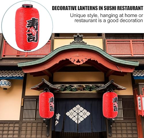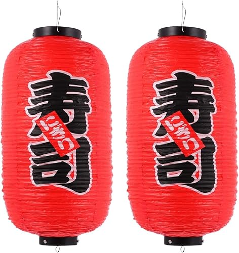 Uonlytech Lot de 2 lanternes japonaises suspendues en soie rouge – Lampes suspendues pour restaurant Sushi – Style japonais en plastique et papier