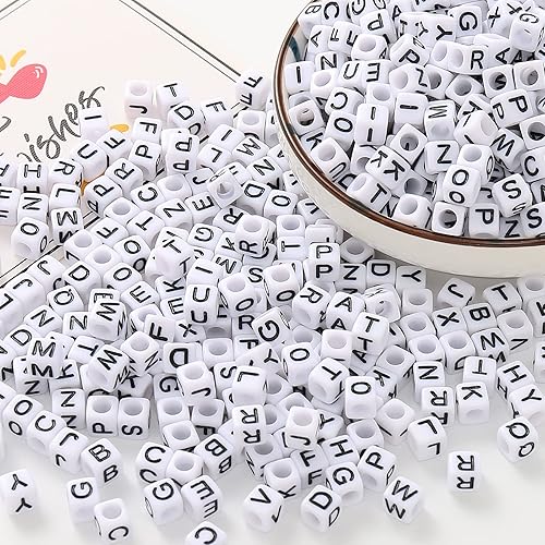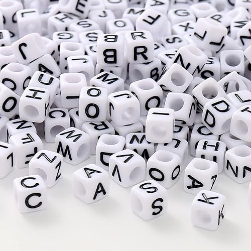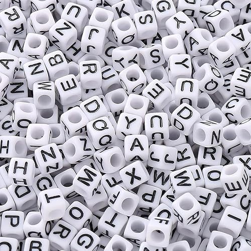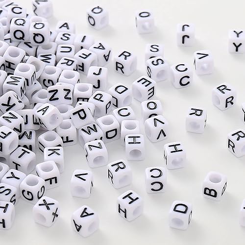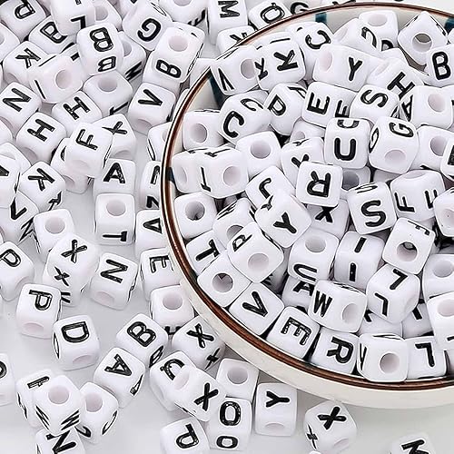 HERZWILD 8 x 8 mm Perles Lettres Perles Alphabet Perle Blanche avec Lettres Noir A ~ Z Perles Lettres 400pcs cubiques Lettres Perles pour DIY Artisanats(8 x 8 mm)