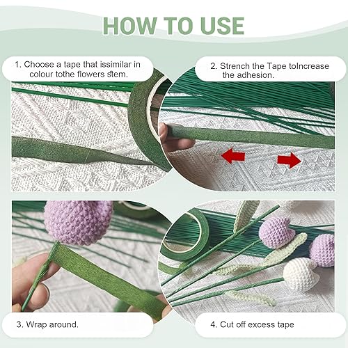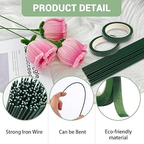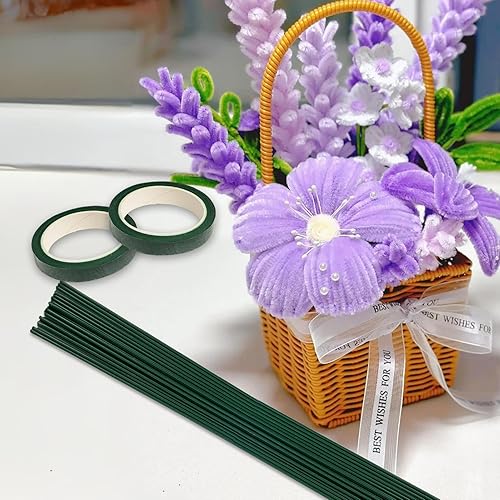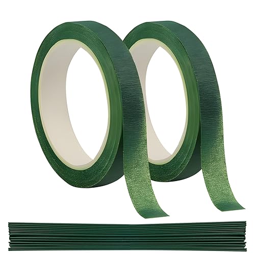 Hawdows 20Pcs Tiges Fleurs Artificielles, Lot de 2 Ruban de Fleuriste, Ruban Adhésif Floral Vert, Accessoires pour Cure-pipes, Accessoires pour Pipe Chenille, pour Enveloppement de Bouquets