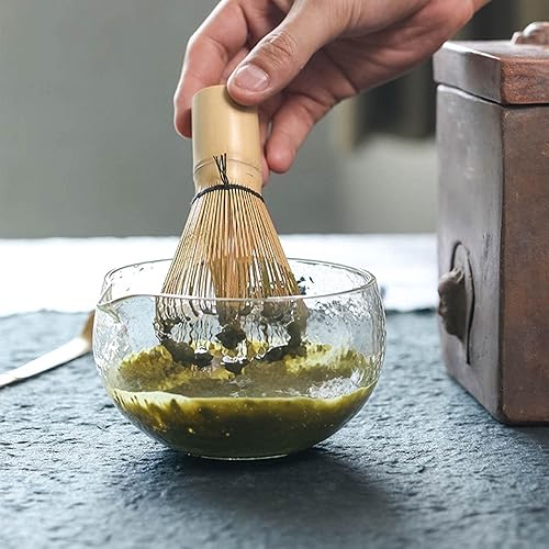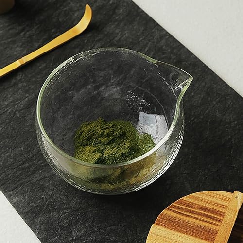 SM SunniMix Bol à Matcha avec Bec verseur, Verre Matcha Transparent épais et résistant à la Chaleur, Bol à mélanger de Style Japonais pour Facile à