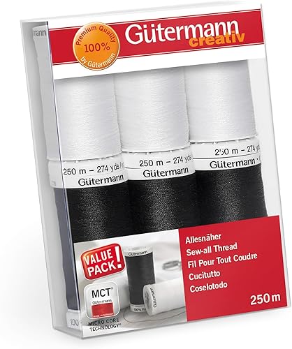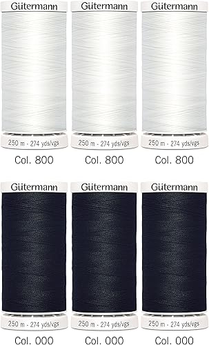 Gütermann creativ Kit de fil à coudre avec 6 bobines de fil Pour Tout Coudre 250 m en noir et blanc